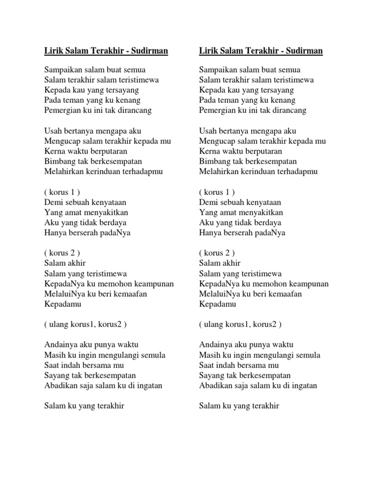Lirik Lagu Salam Terakhir Sudirman Lirik Lagu Baik Pdf
